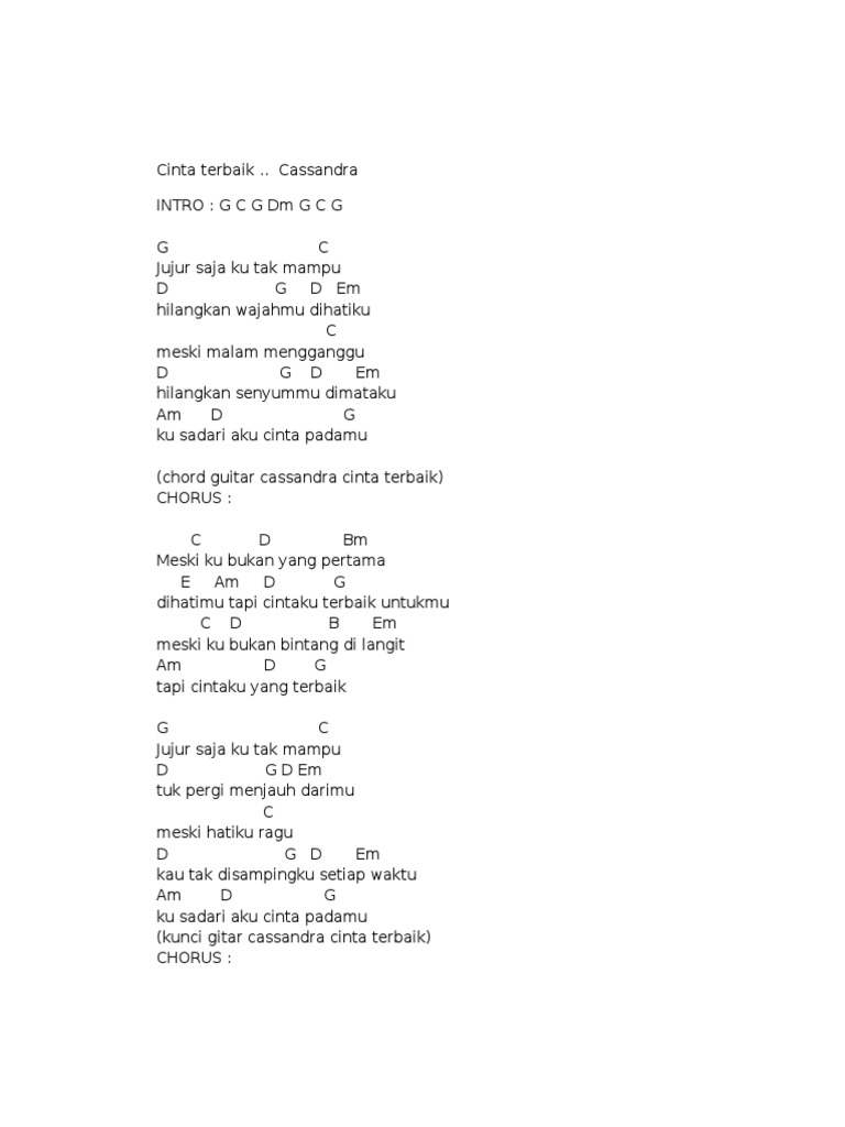 Lirik Dan Chord Gitar Lagu Cinta Terbaik Cassandra Kilas Berita